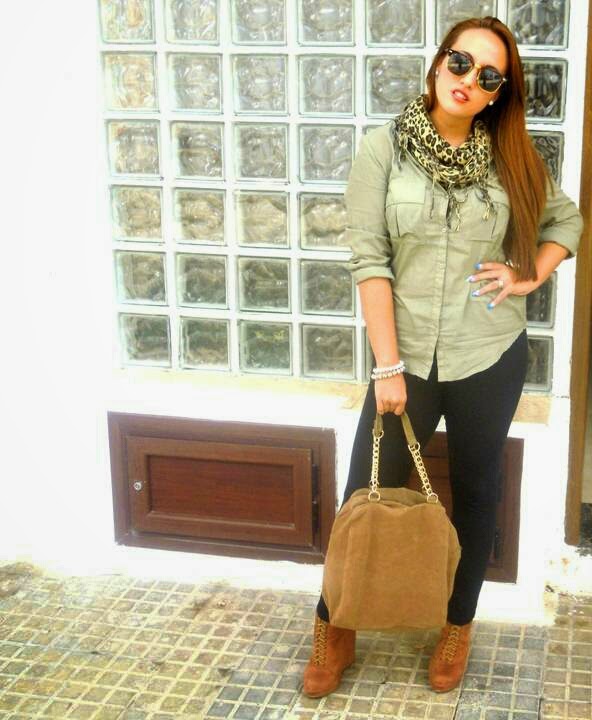 My look today is that this morning I went out to eat with my boy. The day was pretty cloudy and somewhat rainy, so I decided not to go calling attention and play around with the basic and accessories. I think it was a good choice to choose a shirt in military green, some black leggings, booties wedge lace and certainly a touch of animal print, and now you know I'm addicted to this pattern and will certainly be a must this season, what do you think the look, you like?